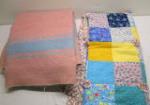 | Lovely handmade Patchwork quilt with Woolen Hudson Bay pink and blue blanket. |