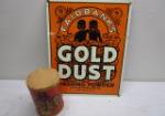 | Porcelain Gold Dust washing powder advertising sign with small canister of scouring cleanser, full bottle. |