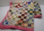 | Beautiful handmade quilt. Squares with pink border and backing. |