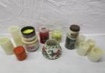 | Large selection of candles and candle related items including six battery operated "matchless" candles, three Yankee candles, a Basketville jar candle shade (featuring a cardinal shade) and more. |
