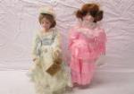 | #22 Adorable pair of bisque, collectible dolls including a 17" Kingstate Prestige Collection "Victorian" doll and an 18" Heritage musical doll. |