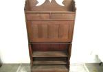 | Gorgeous Larkin brand antique drop-front secretary desk featuring a drop down writing surface, two drawers over storage cubbies and two smaller drawers. There are also three shelves below the writing surface. |