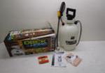 | Garden yard tools including hound dog, the weed hound, plastic watering can, garden and Lawn feeder container, hose attachments and sprinklers with garden tools. |