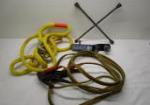 | Reese towpower hitch with 2 inch ball, 3 and 1/4 inch drop, heavy duty tow nylon cable, cross lug nut wrench and jumper cables. |
