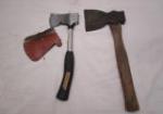 | Vintage Early Stilletto Hatchet & Buffalo Camping Hatchet with Leather Blade Sheath. |