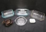 | Pyrex and Anchor glass baking dishes. |