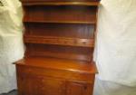 | Beautiful Heywood Wakefield kitchen hutch featuring a dove tail design, two plate shelves over four small drawers over a large workspace over a large drawer over three small drawers and two additional storage areas. |