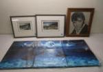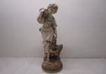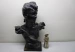 | Impressive 22" vintage Art Deco Austin Production reproduction bust sculpture, possibly of a woman titled "Jeanette". This sculpture appears to be white metal with a dark patina on a wooden base. Also included is an 8" porcelain figurine by "Prestige Collectors Club". |