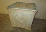 | Darling vintage style "shabby chic" storage chest featuring a floral motif and velvet lining. |