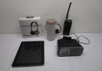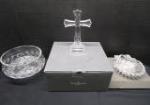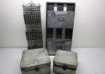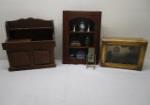 | Assortment of three metal home decor pieces including a 12"W X 3-1/2"D X 25"H wood and metal, two tier mail sorter, and two metal storage boxes. |