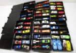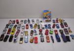 | Bin of over 50 diecast cars from a variety of manufacturers including Hot Wheels and Matchbox. |