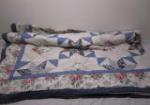 | Lovely hand made 86" X 84" pink patchwork quilt. |