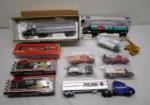 | Tray lot of mostly Tractor Trailor trucks, some diecast, some plastic. |