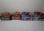 | Four diecast 1:6 scale pedal car banks in original packaging. |