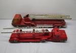 | Vintage Nylint Aerial Hook-N-Ladder fire truck and a Buddy L BLFD #3 extension ladder fire truck. |