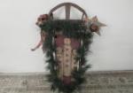 | Heartwarming 43" vintage, Christmas (decor ) sled featuring a primitive snowmen motif, a primitive star and Christmas garland. |