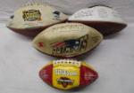 | 3 New England Patriots collectible footballs with a NC Trojans collectible football. |
