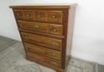 | Very nice Bassett brand colonial style wooden dresser featuring a multi-drawer style and nice brass style hardware. |