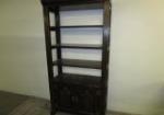 | Dark wooden home/office book case/display unit featuring four open shelves over two doors with two additional shelves. |