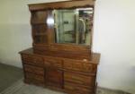 | Vintage, Bassett brand triple dresser featuring a hutch top mirror. |