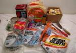 | Assortment of home improvement items including five Macklanburg-Duncan packages of weather strips, four packages of Dennis brand weather stripping, Two packages of "Wrap -On" 3" fiber glass, large box of new fuses, and more. |