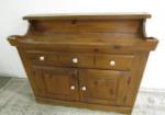 | Very nice grey sofa/hall table featuring two small drawers, two storage areas, nice hardware and a lower tier. |