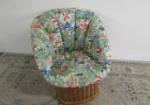 | Adorable "tub-style" chair featuring a rattan base and floral upholstery. |