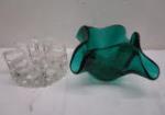 | Murano tall crackle art glass vase with brown speckles and tall Red rectangle vase. |