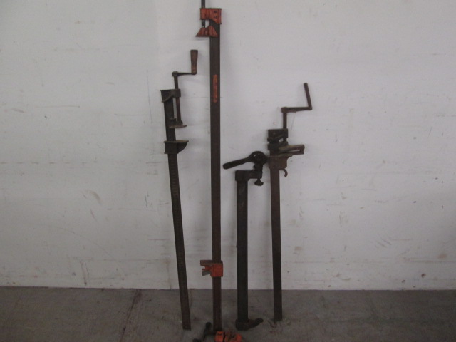 This assortment of four woodworking, adjustable, F-clamps (also named speed clamps) are in used condition. Please preview.