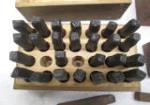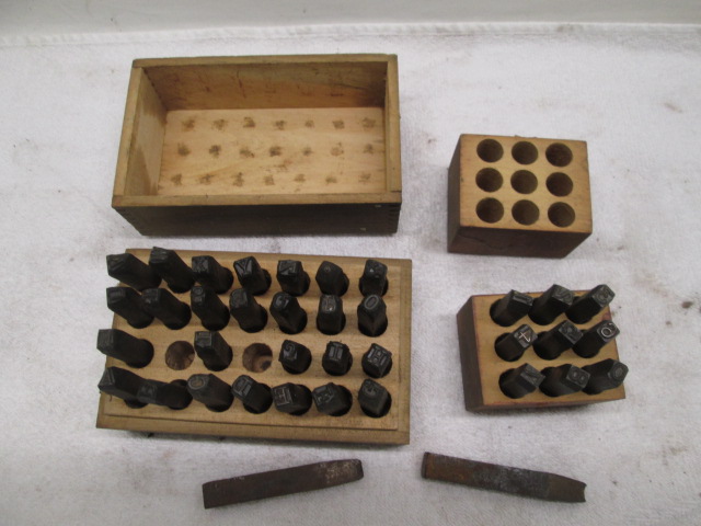This nice vintage steel stamp punch set features letters and numbers 0-9. The letter set is missing the letters K and M, however K and M from a different set are included. These sets are housed in their original box. These items are in used, good condition. Please preview.