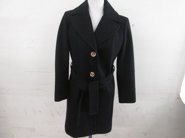 This gorgeous Michael Kors, size 4, black wool and polyester coat is in very good condition. Please preview.