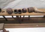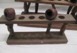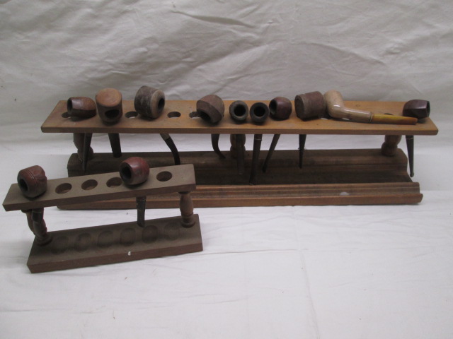 This nice collection of twelve vintage smoking pipes, in their display racks, include a Ropp supreme cherry pipe, a Filter master pipe, a Savinelli pipe and more. These items are in vintage used condition. Please preview.