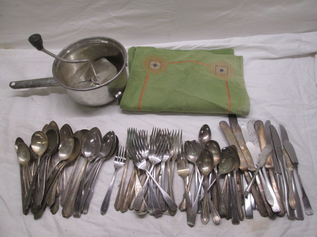Get ready for the holidays with this selection of silverware with various patterns. Also included in this lot is a vintage Foley Food Mill. These items are in used, good condition. The silverware will need to be cleaned prior to use. Please preview.