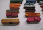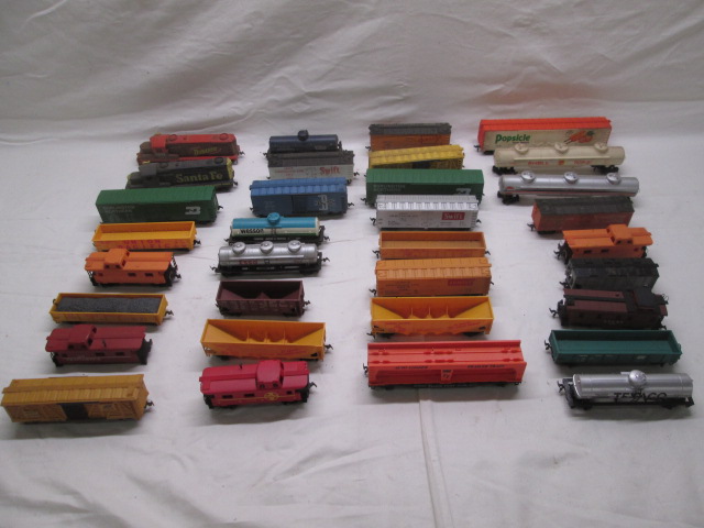 This assortment of 30+ HO scale model train cars includes models of Union Pacific, Union Pacific, Santa Fe and more. These items are in used, good condition. Please preview.