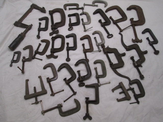 28 assorted C clamps. All in good vintage ad usable condition. Please preview.