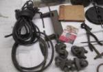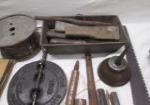 Soldering Gun, Cast Iron Trivet Covers and Assorted Tools. Great collection of vintage tools and hardware. Good condition, please preview.
