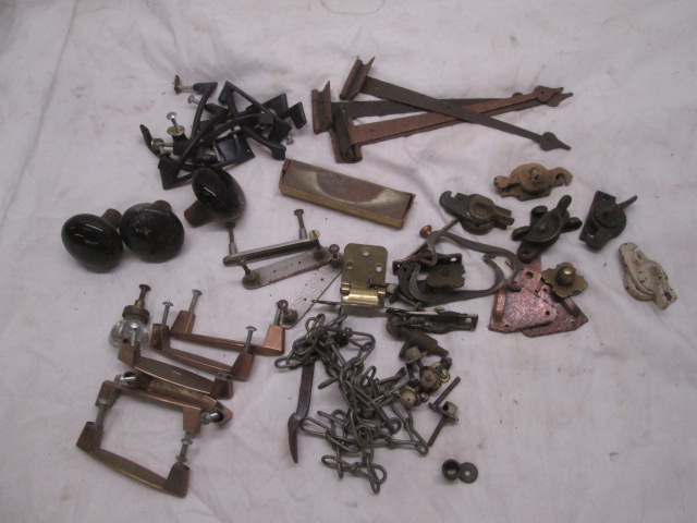 Lot of vintage cabinet, window and door hardware. Please preview.