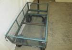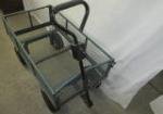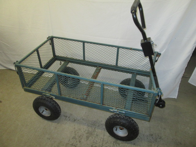 This heavy duty steel garden cart features removable mesh sides and a wide handle. The "basket" section measures 20"W X 38"L X 9"D. The total height is 22-1/2". This item has some areas of rust and one dent however it is in usable condition and will meet your needs. Please preview.