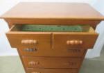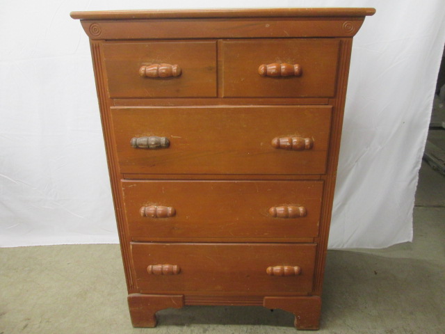 This darling vintage dresser with four drawers, each with dove tail design, measures 29"W X 17-1/2"D X 42"H. This piece is in used, good condition with miner wear due to age. Please preview.