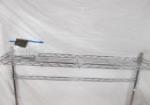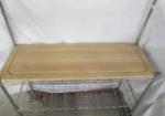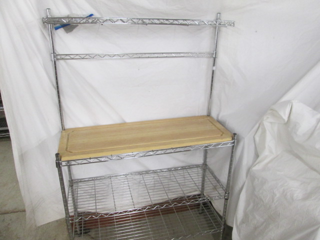 This very nice backer's rack (kitchen) shelving unit is wood and metal with nice details. This piece measures 36"W X 14"D X 56"H. This item has three shelves and an additional wooden work space. This rack is in good condition. Please preview.