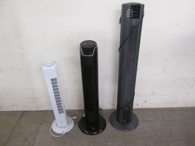 These three nice tower style fans include a 47" Lasko brand fan (model # T48311) , a 30" Easy Home fan (model # LG29-05) and a Mainstay fan (model # FZ10-19JR). These items are in good condition. Please preview.