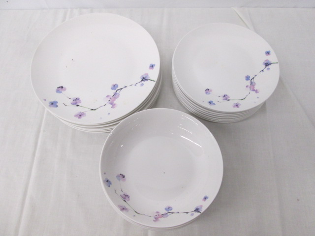 This partial collection of dinnerware from the Melange Purple Zen porcelain dinner set contains eight 8" plates, (2 are chipped) eight 8-1/2" bread plates and six 10-1/2" dinner plates (1 is chipped). These items are in good condition, unless otherwise noted. Please preview.