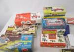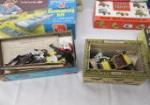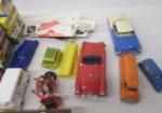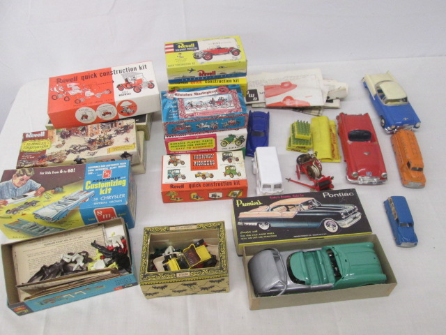 This miscellaneous collection of vintage boxes, model car accessories (people and parts), and a possibly complete Premier's Model Pontiac model car kit are in vintage and used condition. Please preview.