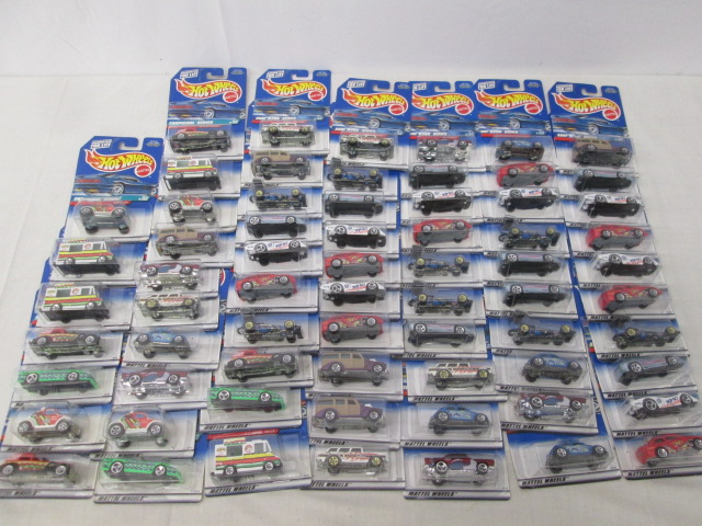This impressive collection of 67 new Hot Wheels collectible cars includes "Uno", "Skip-Bo", "Bug-N'-Taxi" and more. There are some duplicates within this collection. These items are in new condition. Please preview.