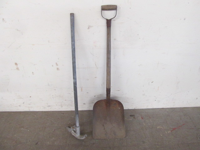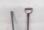 A 39.5" long Gardner No. 930 conduit bender or pipe bender and a 42" long flat-bottomed metal shovel. Please preview.