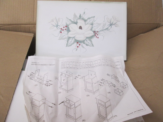 Unassembled Collections Etc. Magnolia cabinet, still in box. Comes with assembly instructions. Please preview.