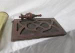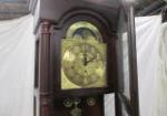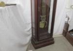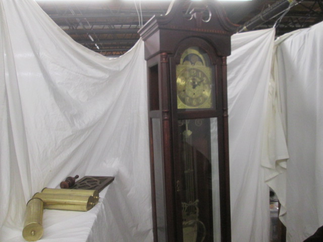 Ridgeway grandfather clock with weights and side panels (not installed). Missing bottom panel. Measures 84" high x 23 1/4" wide x 12 3/4" deep. Please preview.