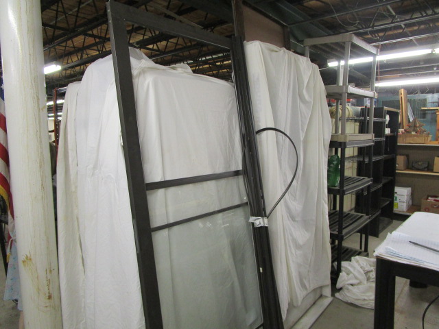 This Emco Enterprises storm door with brown frame and trim (product # 21147-115) has tempered glass and measures 35”W X 83-1/4”H (glass and frame). This item is in new condition. Please preview.