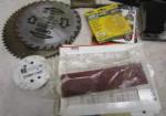 This selection of sanding/grinding/cutting tools include Warrior angled sanding sponges, a partial box of multi abrasive rolls grit paper, four (two Credo brand) 10" 28 carbide teeth saws, a Stack Dado set, a hole saw kit and more. These items are in used, good condition. Please preview.