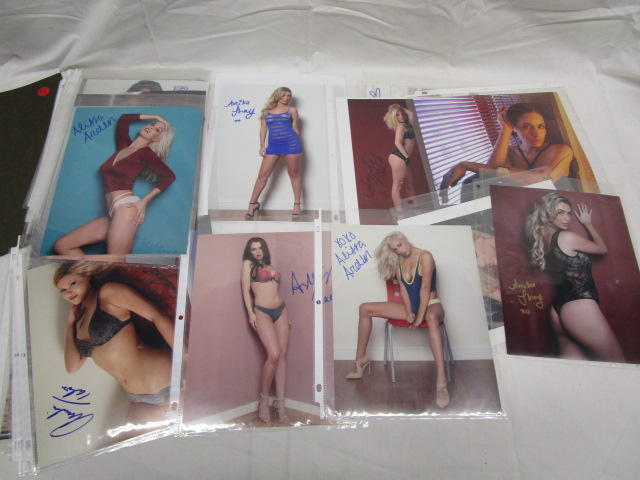 This large selection of thirty six autographed, promotional photos of Playboy Playmates and adult film stars includes three with their corresponding Certificates of Authenticity. Stars include Anika Shay, Ashley Doris, Alissa Arden and more. These photos are in good condition. Please preview.